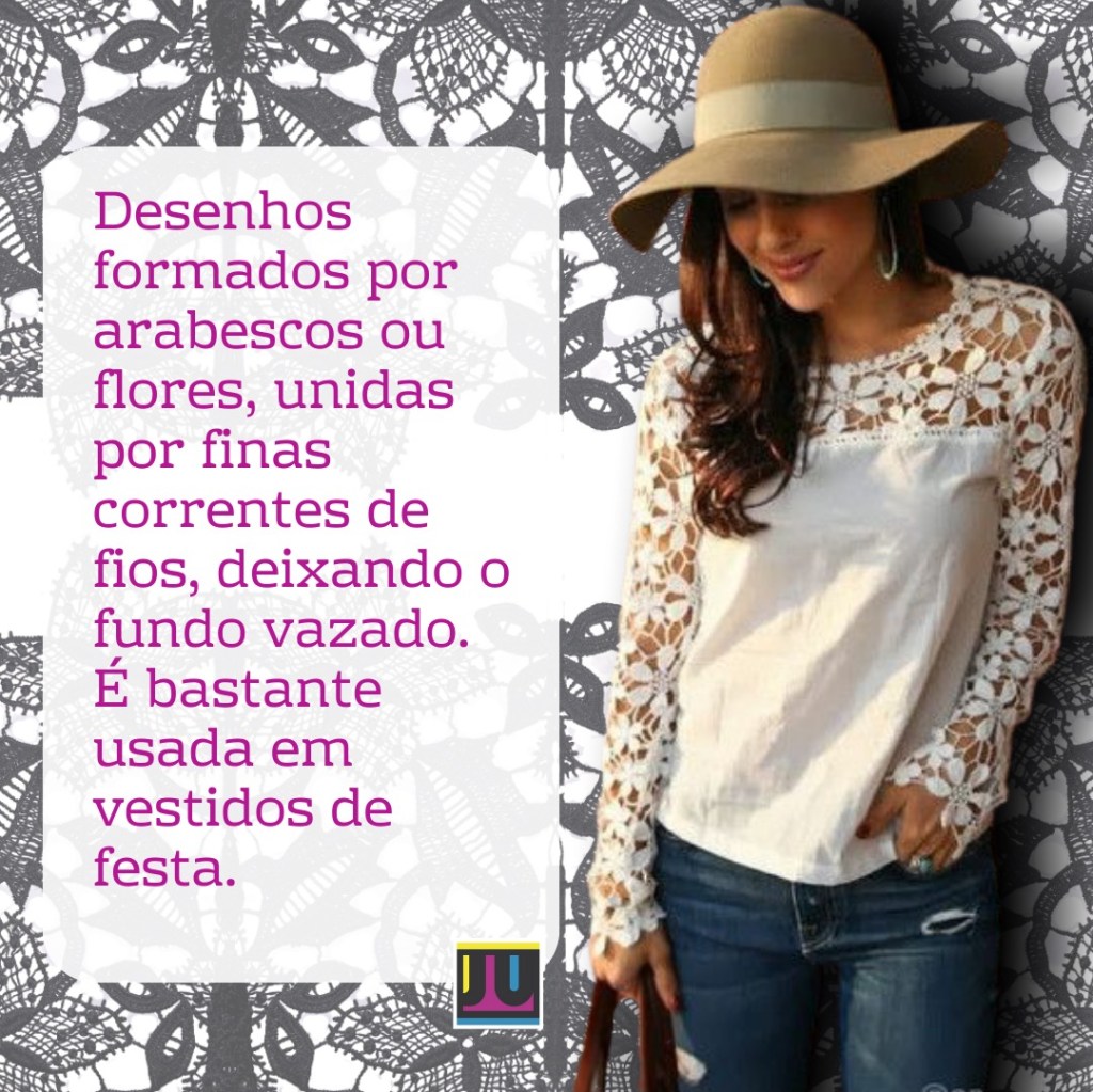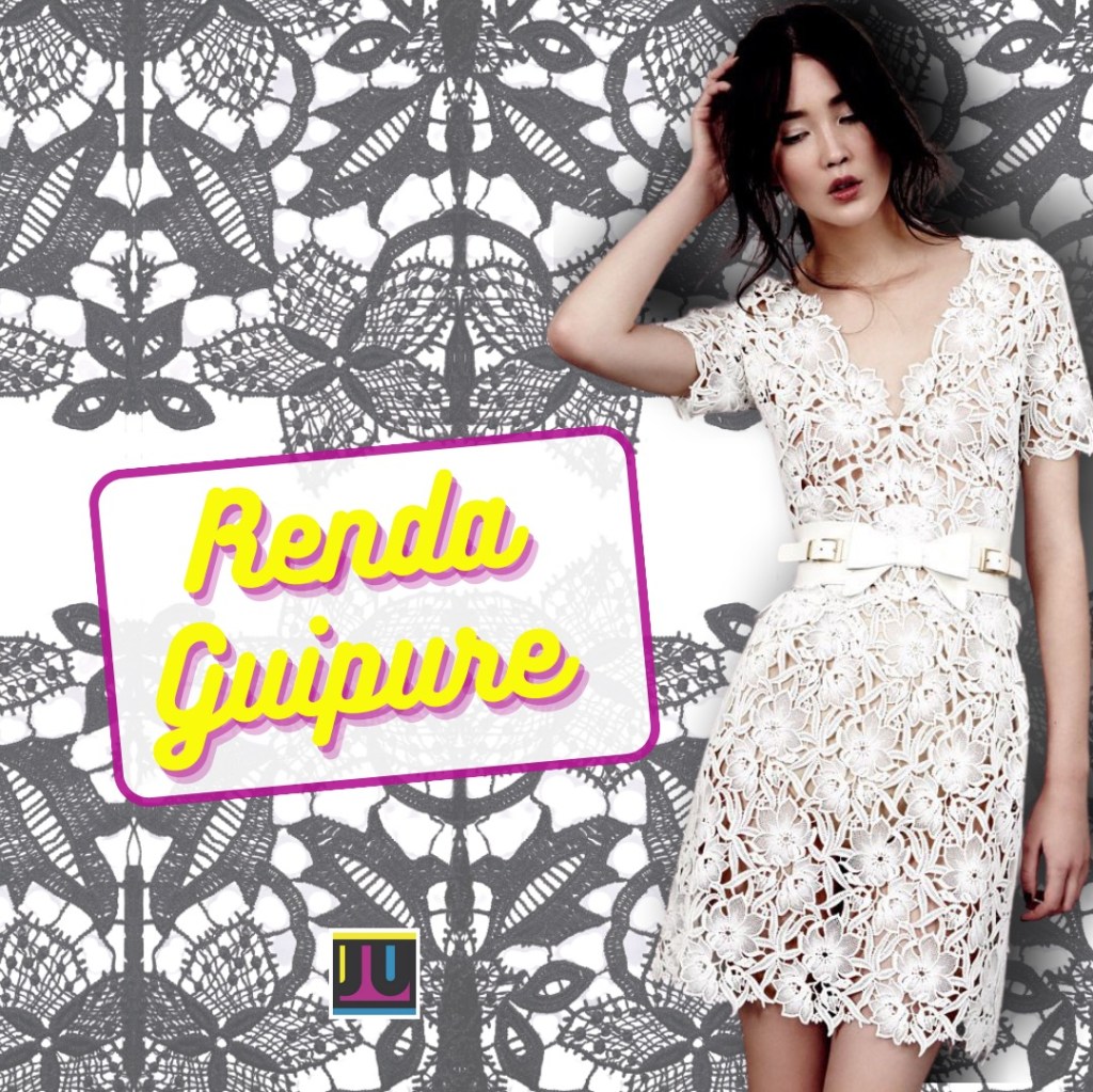 Em inglês, a renda se chama ‘lace’ [leis], e pode ser de algodão, linho, poliéster ou outras fibras. Alguns tipos de renda que você já deve ter ouvido falar são: renda guipure, renda chantilly, renda filé, renda richelieu. Destaco abaixo imagens, looks e curiosidades sobre a renda GUIPURE.